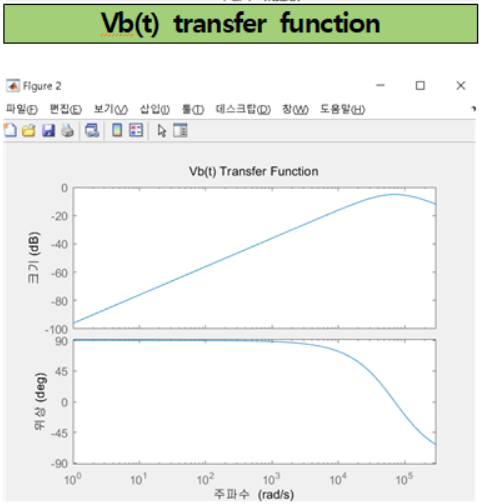 Vb(t)의 경우 전달함수가 주파수에 비례하여 증가하는 특성을 확인할 수 있었다. 하지만, L의 값이 매우 작아 전달함수의 분자가 매우 작은 값으로 수렴하고 거의 0에 가까운 값이 도출됨을 확인하였다.