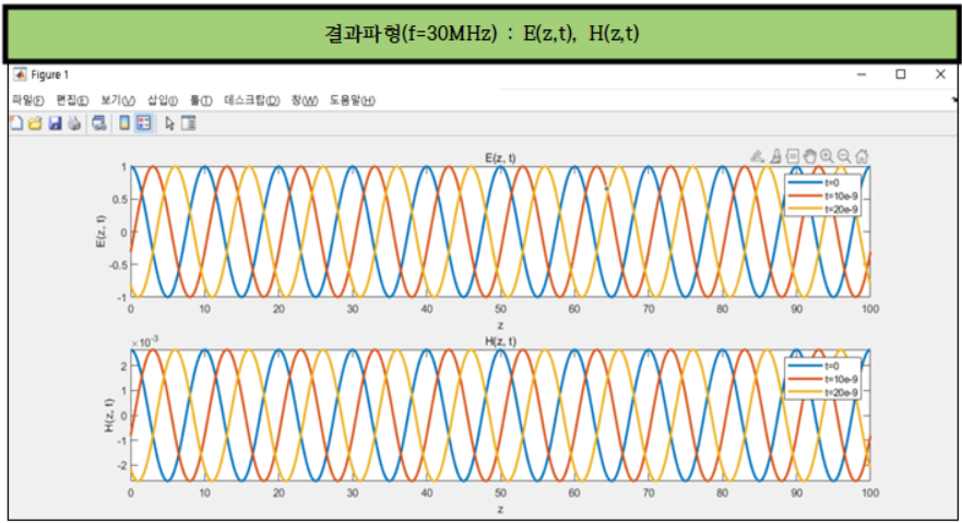 위의 문제에서 f = 30MHz로 변경해서 그 결과를 도시하시오.