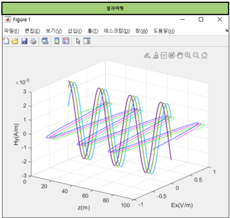 Matlab 함수 중 plot3를 이용하여 E-field와 H-field를 도시하시오.