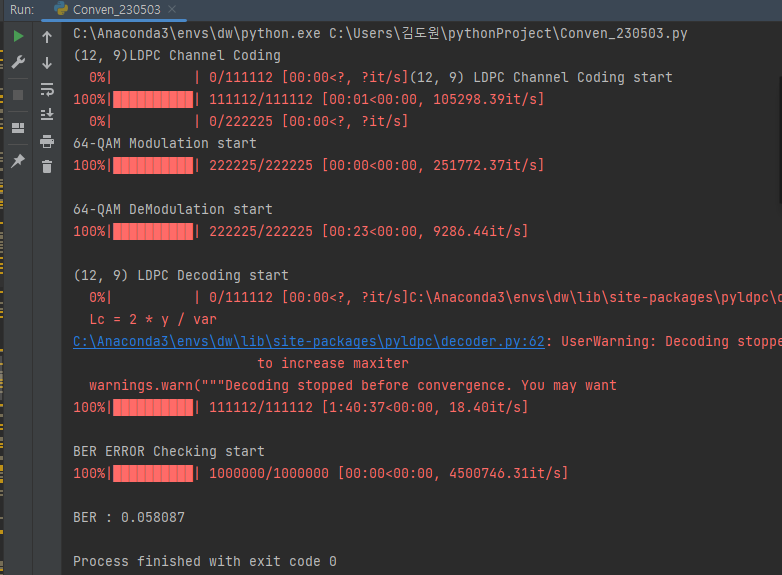 print("SNR = {}, Complete!\tBER : {}".format(i, BER))